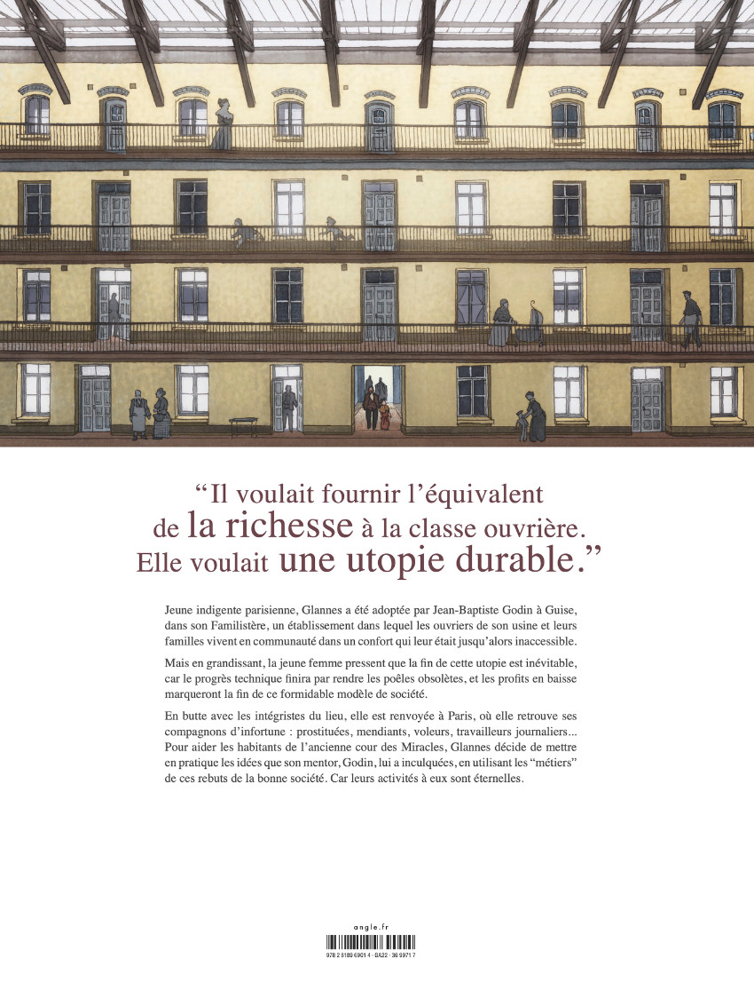 aris,1864. Alors qu'il devise avec son fils dans les halles Baltard, Jean-Baptiste André Godin se fait détrousser par une enfant. Celle-ci est attrapée par un commerçant qui s'apprête à la rosser, lorsque l'industriel s'interpose. Touché par l'histoire de la fillette, au grand dam d’Émile, Godin décide de l'amener au familistère de Guise afin de l’élever. Des années plus tard, Glannes a bien retenu les leçons du philanthrope qui l'a sauvée : elle lance en plein Paris une version de l'utopie dédiée aux plus humbles et aux rebuts de la société. Toutefois, en province, le comte de Caius œuvre pour détruire ce projet. Pourquoi ?