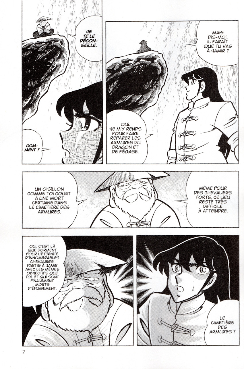 Résumé: Les armures du Dragon et de Pégase ont été sévèrement endommagées lors de leur affrontement pendant les Galaxian Wars. Alors que les chevaliers noirs se préparent à attaquer, Shiryû décide de se rendre à Jamir pour rencontrer Mû, seul être capable de réparer les armures. Les chevaliers de bronze affrontent les chevaliers noirs, et le triste passé d'Ikki est révélé !