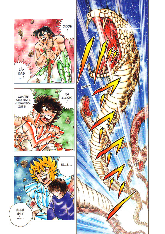 Résumé: Suite à un rêve étrange, Shiryu parvient à retrouver l'âme de guerrier qui le guidait naguère, et acquiert la reconnaissance du dieu-dragon Ryujin. Ce succès lui permet de vaincre Écarlate, le chevalier d'Or du Scorpion, lequel est victime d'un étrange mal... Pendant ce temps, Hyoga arrive dans la maison du Sagittaire. Il rencontre le gardien, Gestalt, qui a l'apparence d'un centaure. Mais il s'avère que cette apparence chimérique est en vérité le fruit d'une illusion créée par ses propres désirs... Écarlate et Gestalt ont un étonnant point commun : tous deux affirment avoir une dette envers le légendaire guérisseur Ulysse - lequel s'apprête à revenir sur Terre pour endosser l'armure d'Or de l'Ophiuchus...