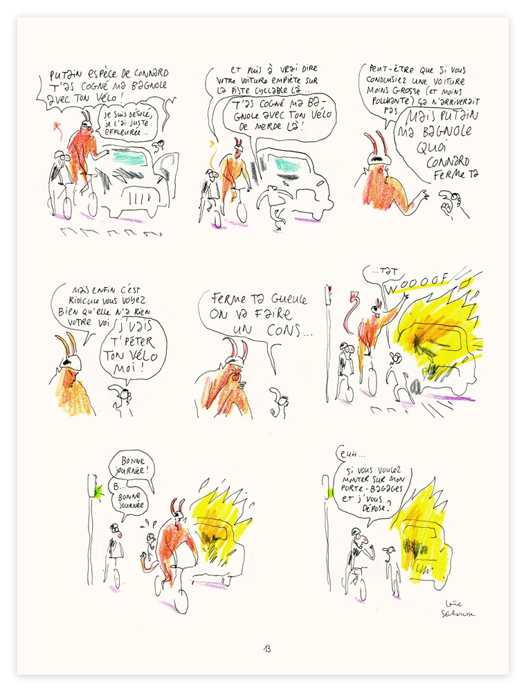 Résumé: Satan est bien vénère. Parce qu'avec leurs idées anti-écolo débiles ? comme la trottinette électrique ou encore le SUV ? les humains sont en train de lui bousiller son outil de travail : la Terre ! Il décide donc d'intervenir en se chopant un quidam entre quatre z'yeux, histoire d'essayer de faire dévier la planète du cataclysme en nous convertissant à l'éco-responsabilité, de gré ou de force ! Le souci, c'est que les humains choisissent souvent la mauvaise voie. Et ça, Satan aurait pu le savoir, quand même !