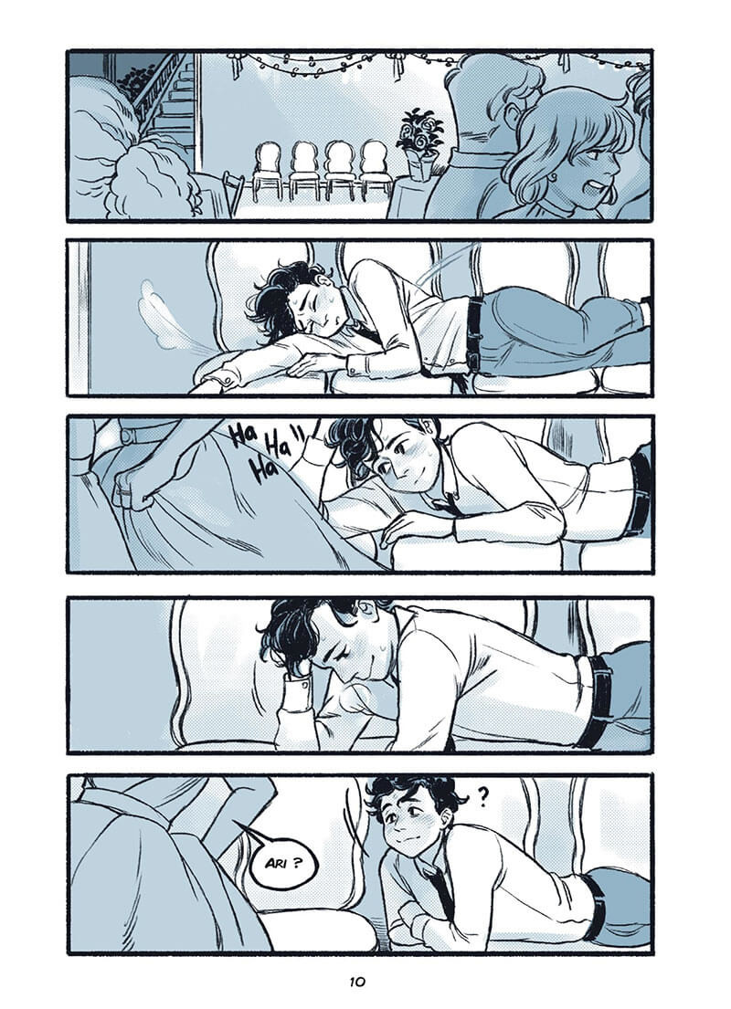 Ce qui surprend au premier abord, c'est que c'est dessiné à la manière d'un manga mais avec une touche de bd européenne bien que l'action se situe dans une ville côtière des États-Unis. On apprendra que c'est le premier roman graphique des auteurs, le scénariste américain et la dessinatrice australienne . Bref, il n'y a plus de normes et c'est tant mieux. On va suivre un jeune adolescent Ari qui cherche sa voie aussi bien professionnellement que sentimentalement. Son père boulanger souhaite coûte que coûte qu'il puisse l'aider à faire tourner son commerce pour reprendre plus tard cette affaire. Pour cela, il va embaucher un nouveau compagnon Hector qui va prendre un plus d'importance pour son fils. Le dessin est franchement doux et concourt à une atmosphère joyeuse baignée de bonheur au milieu de toutes ces pâtisseries. J'ai beaucoup aimé ce graphisme qui fait ressortir les émotions des différents personnages. Par ailleurs, cette bichromie aux tons vert-bleu donne une touche parfaite à cette œuvre. On ressentira véritablement la saveur du printemps dans cette joyeuse romance entre cuisine, musique et romance.BDGest 2014 - Tous droits réservés