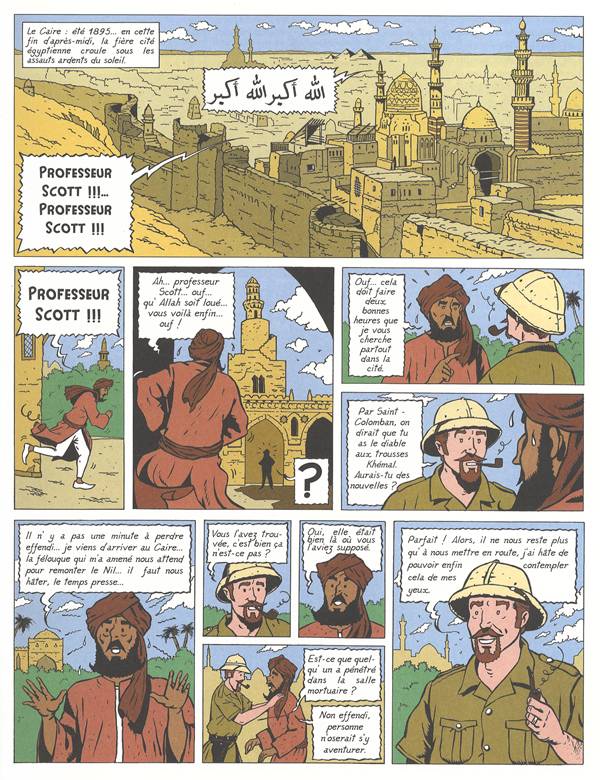 J'irai certainement à l'encontre de pas mal de monde, mais j'ai adoré cet album (à voir ce que donne la suite à Dunmhor). Je ne suis pas d'accord sur le plagiat dénoncé, car franchement hormis que les héros sont deux, il y a moult différence, sur les caractères (Hasting est anti français, se moque des traditions, notamment), leur vécu (scott est marié et a un enfant notamment). Franchement c'est ridicule qu'accuser Marniquet de plagiat là dessus. Effectivement les deux héros sont anglais, l'époque est la même, le dessins très proche (excellent d'ailleurs je trouve), les dialogues sont aussi maniérés que chez qui vous savez, mais bon sorti de là. J'ai beaucoup aimé le dessins, l'ambiance, qui marie l'égypte, l'angleterre, l'écosse, et rajoute un coté fantastique. Certes c'est très cliché, mais c'est voulu. Le clin à Clint Eastwood m'a bien fait rire. Non franchement je me suis régalé. Quand à la cote dont on parle dans les autres avis, cherchez le moins cher. Pour moi la cote c'est la rareté certes, mais aussi le scénario et surtout les dessins que je trouve loin d'être ridicules. Le scénario est bourré de clichés, et alors? Les anachronismes? Bof pas grave pour ma part. J'ai lu mille fois pire dans le genre old school. Il me semble d'ailleurs qu'à l'époque cette bd a eu un succès certain certainement du effectivement à la parenté avec B&M. J'ai mis 5 étoiles car je ne supporte pas qu'on dézingue une bd pareille (elle en mérite 4 pour moi)Le 02/04/2010 à 15:35:30