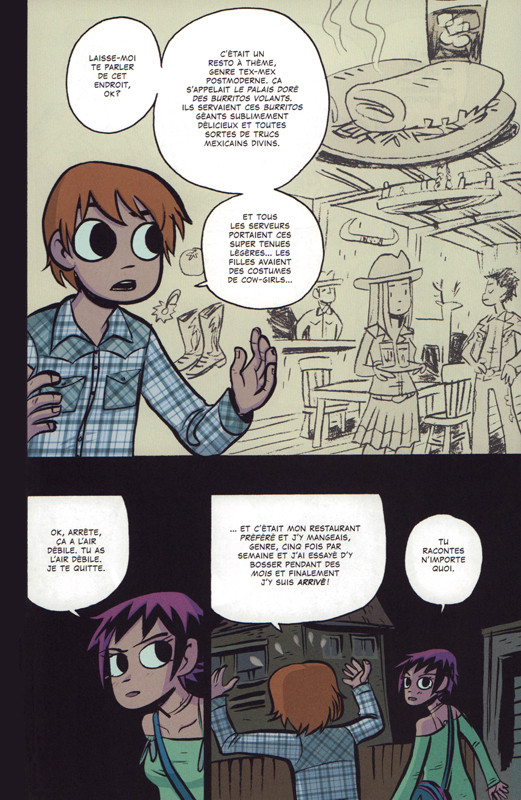 Ça, c'est sans compter sur l'arrivée dans ses rêves et dans sa vie de Ramona Flowers, livreuse de colis à rollers ultra-lookée. Serait-elle celle qui peut chambouler sa vie ? Devra-t-il affronter ses sept ex maléfiques dans des combats ? La réponse est oui, et c'est que vous allez découvrir dans ce premier tome de la série à succès de Bryan Lee O'Malley, brillamment adaptée au cinéma en 2010.