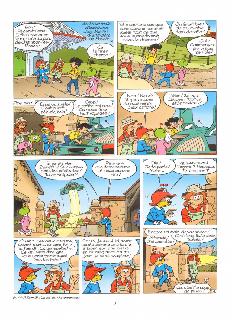 Résumé: Khéna, le Scrameustache et les Galaxiens quittent la maison de Babette avec cette dernière dans les bagages, puisqu'elle ne pouvait se résoudre à les quitter après avoir vécu de si palpitantes aventures ! À Chambon-les-Roses, elle découvre l'univers étonnant de nos amis. Les vaisseaux spatiaux, la salle de transmission avec les Galaxiens, mais aussi l’accusmala ! Un soir, elle aperçoit une boule lumineuse qui s'écrase dans la campagne, non loin de la ferme d’Oncle Georges. Un O.V.N.I. qui s'écrase si près de là où vit le Scrameustache, ça ne peut pas être un hasard ! Mais entre les facéties des Galaxiens et la curiosité obstinée de Babette, pas facile de mener une enquête...Le regard émerveillé de la jeune Babette permet de redécouvrir l'univers fourmillant de détails extraordinaires du Scrameustache ! Rarement une série jeunesse aura duré aussi longtemps en renouvelant si habilement l'intérêt des lecteurs !