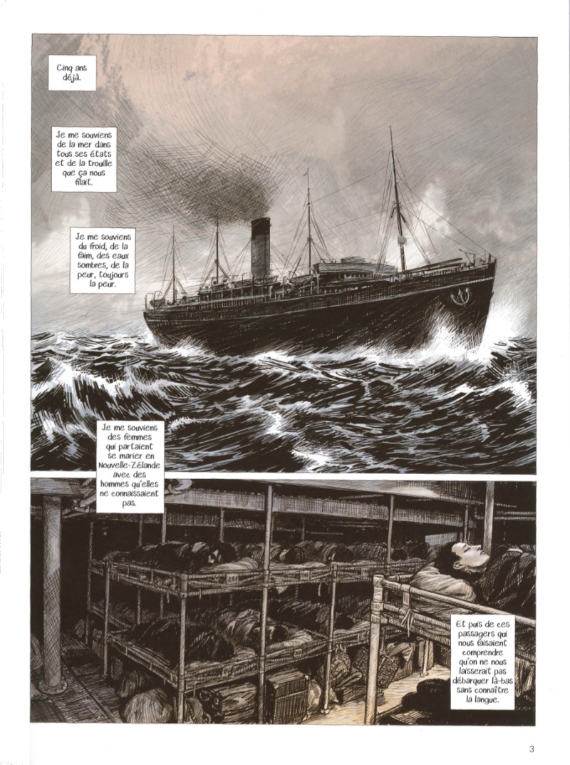 Preuve du talent de Pastor, dès les premières pages le charme opère, on est immédiatement transporté dans cet archipel fraîchement colonisé du Pacifique qu'est la Nouvelle-Calédonie de 1920. Il y a un je-ne-sais-quoi de La Leçon de Piano de Campion dans la façon de dépeindre cette immersion de petits gens civilisés en pleine cambrousse inhospitalière, loin du bruit et de la fureur des villes industrielles d'alors mais aussi loin de la communauté et de la société qui leur ressemble (les villages de Savoie pour notre quatuor). Le malaise est prégnant, à travers le personnage de Pauline notamment, qui transmet à merveille cette incapacité de se sentir chez soi sur une terre volée, dans un monde qui n'est pas le notre. Alors que tout concorde à faire croire que cela pourrait être un petit bout de paradis , la plage de sable fin, la faune et la flore exotique, des autochtones sympathiques et corvéables, un style de vie simple mais confortable pour les colons (pensée émue du Coup de Torchon de Tavernier), ce microcosme va progressivement s'auto-détruire et transformer l'histoire en véritable tragédie. Le dessin -numérique qui n'en a pas l'air à base de hachures "Bic"- de Pastor sert avec virtuosité ce beau récit d'aventure historique, des cases sont sublimes (la poursuite sous la pluie, les paysages de forêts tropicales), les couleurs chatoyantes, l'atmosphère ilienne superbement retranscrite. Une belle lecture qui m'invite à me précipiter sur l'opus antérieur qui peut aussi se suffire à lui-même, Le Sentier des Reines.Le 21/09/2017 à 16:09:06