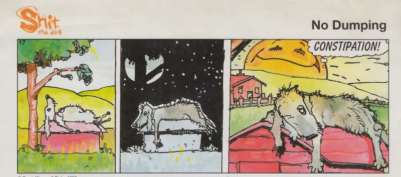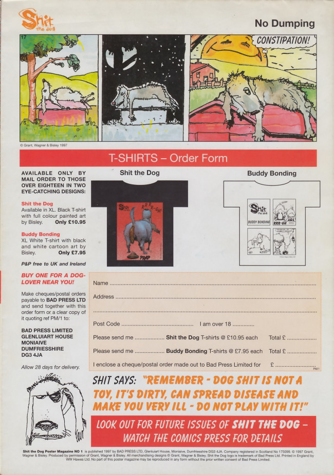 - Info édition : in-folio pliée en un 16-pages. Recto un poster géant, Verso 17 strips d'humour scato.