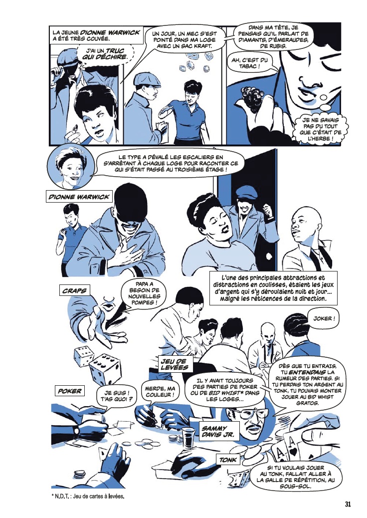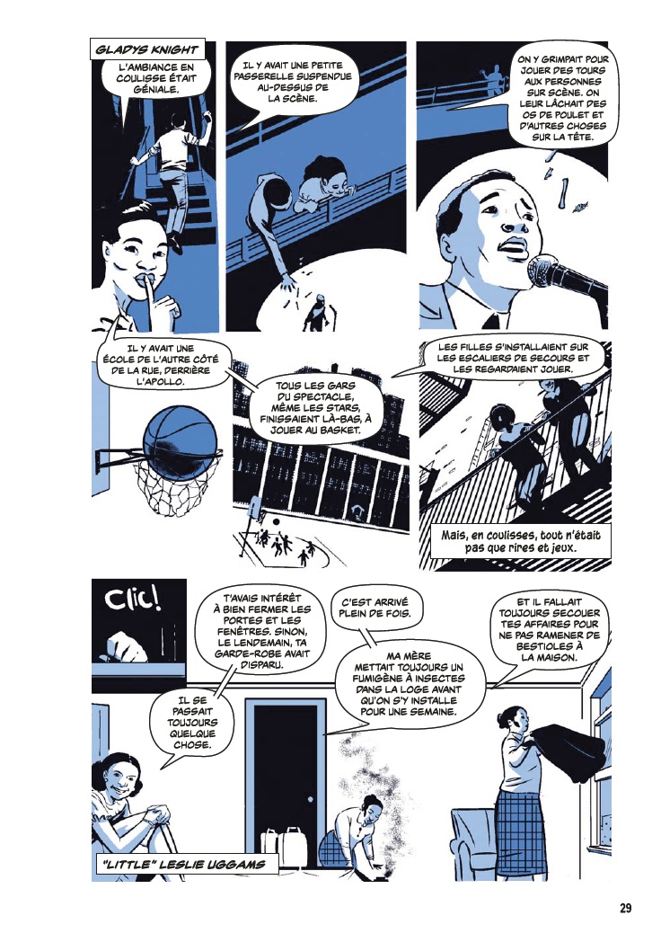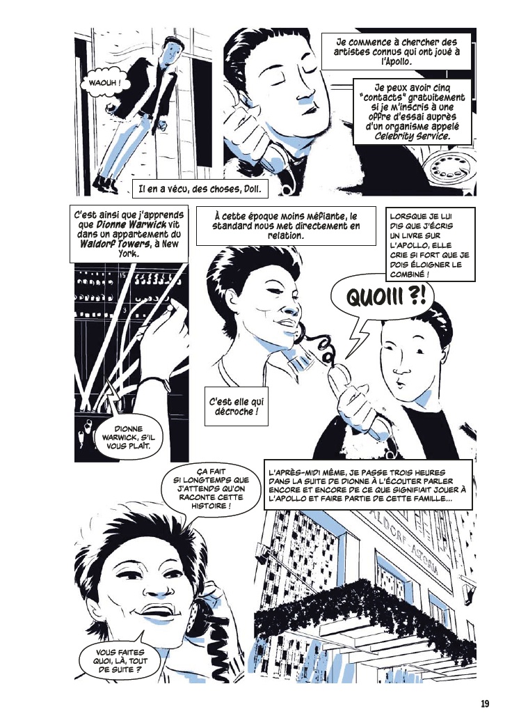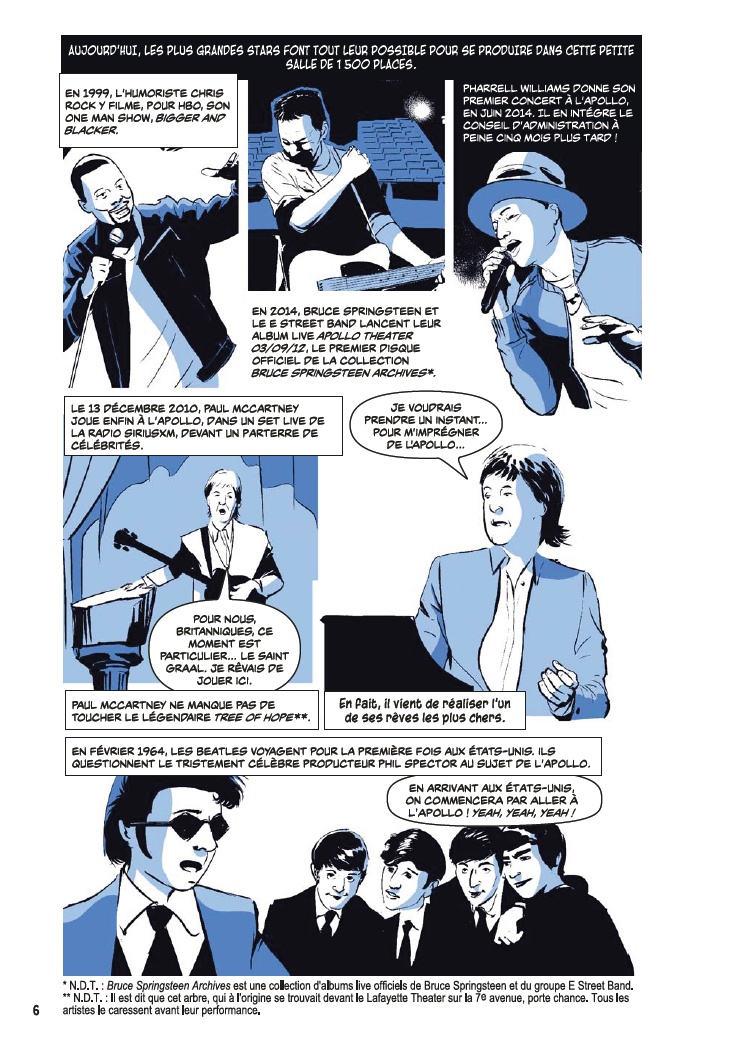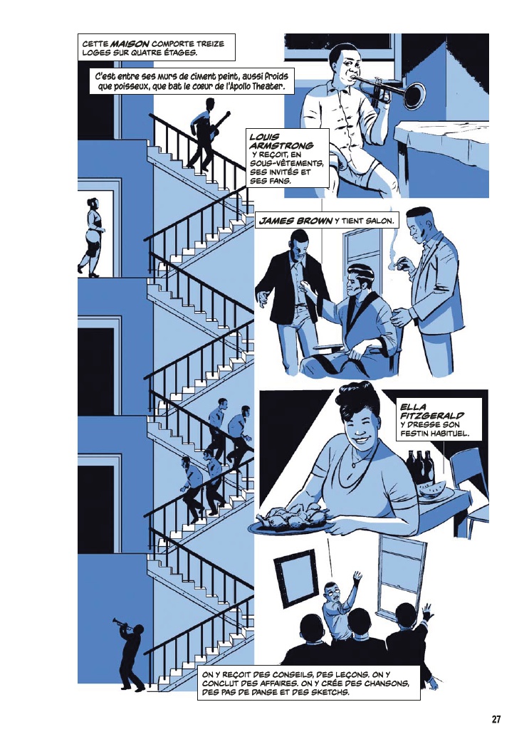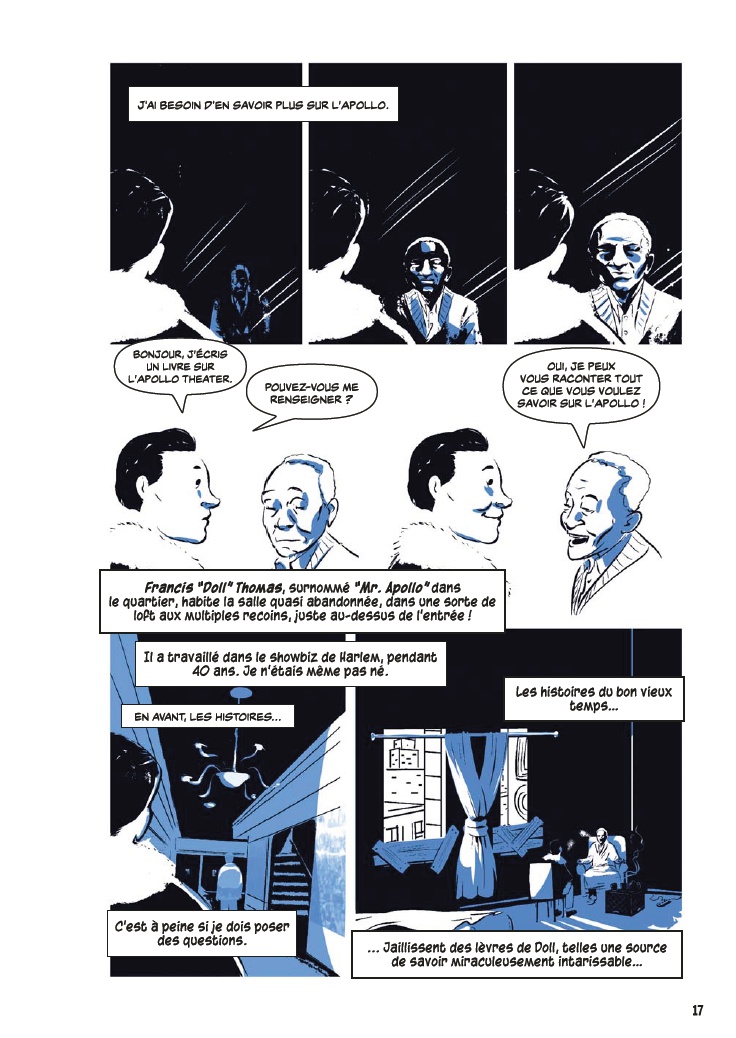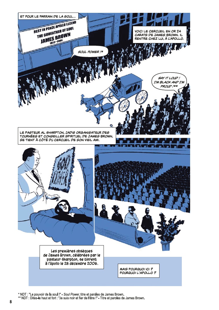 Avec l’aide de James Otis Smith aux pinceaux, Ted Fox revisite et actualise son ouvrage référence paru en 1983 avec Show Time at the Apollo. Jeune homme passionné d’histoire, il avait été le premier à s’intéresser à ce sujet, à une époque où celui-ci était tombé en décrépitude. À force de fouiner et de rencontrer d’anciens artistes, il a commencé à réaliser que l’auditorium était un endroit spécial, tant pour les musiciens, que pour le public et la société civile. Après des mois d’enquêtes et d’innombrables interviews, son livre avait fait date. Depuis, grâce à des mécènes aux poches profondes, l’Apollo a connu une énième renaissance et continue d’être en activité.