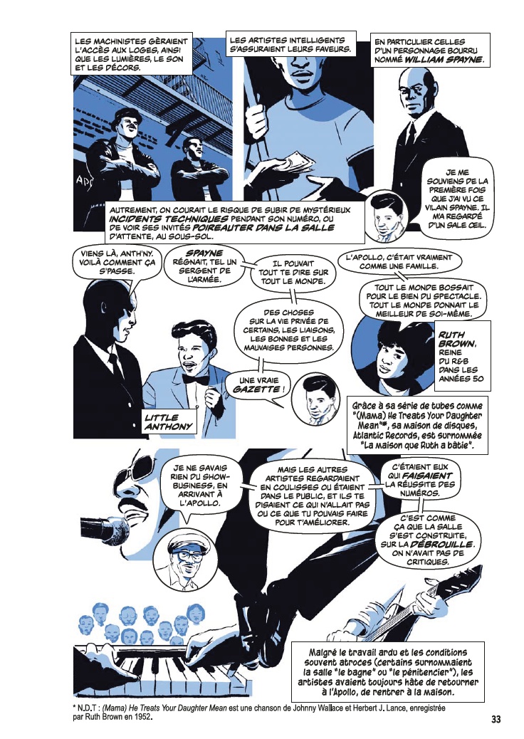 Deux cent cinquante pages remplies à ras bord n’ont pas été suffisantes pour absorber et retranscrire l’incroyable épopée de l’Apollo. Comme ces super-groupes, qui, malgré la somme de talents réunis, accouchent de résultats décevants, Show Time at the Apollo rate le coche : trop dense, chaotique et étouffant. Mille fois dommage.