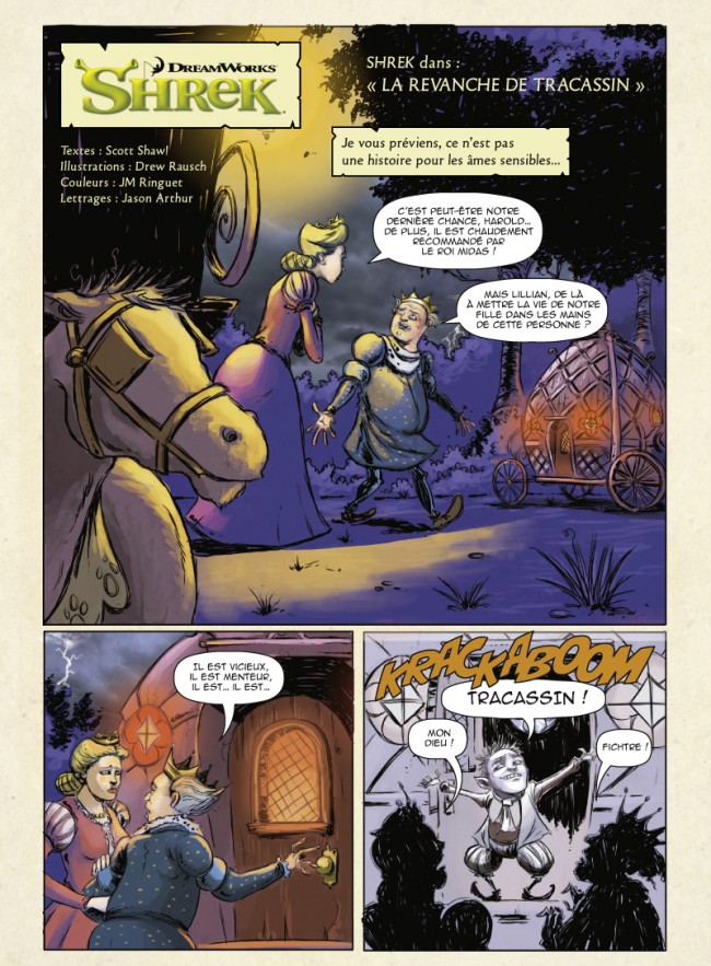Résumé: Plutôt sympa pour un ogre ! Voulez-vous savoir pourquoi le nain Tracassin en veut autant à Shrek ? Cette aventure totalement inédite vous racontera la réponse ! De plus, vous retrouverez nos célèbres amis dans une autre histoire délirante : "Le Joueur de Flûte".