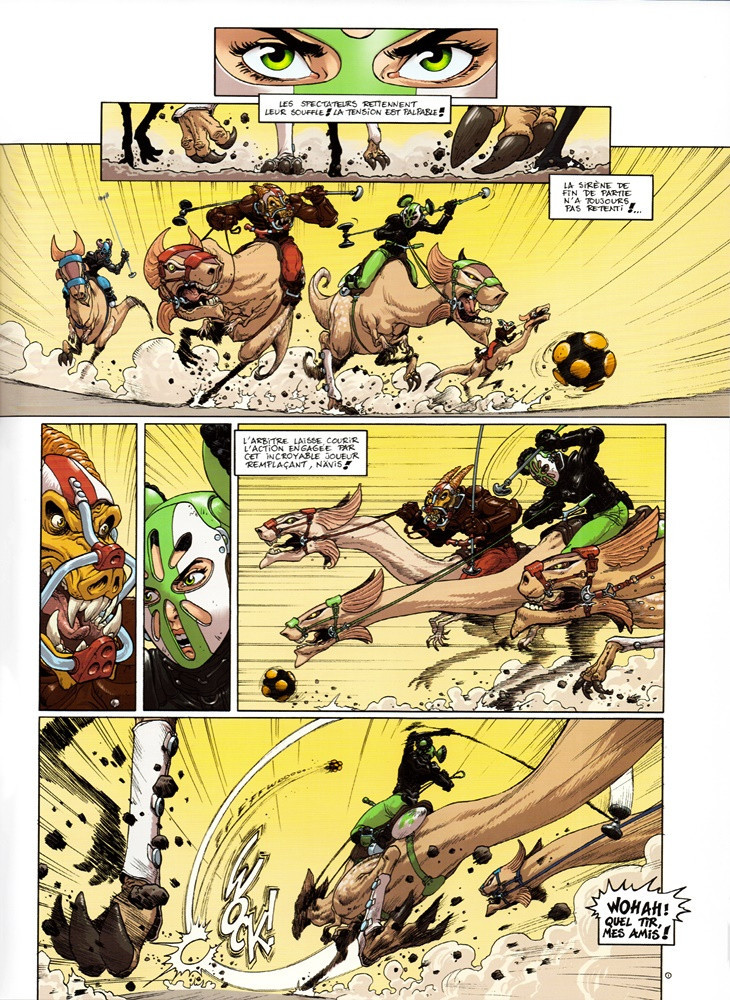 Je suis devenu un grand fan du sillage, suite à l'achat de ses intégrales, courant 2012. Je connais depuis très longtemps la série qui me séduisait sans pour autant provoquer un acte d'achat, peut être aussi à cause de l'investissement de départ pour entrer dans la série. Je me suis initialement intéressé à la série en feuilletant l'épisode 14: le moment le plus fort de la série après le tome 9 jusqu'à présent. Puis j'ai acheté la suite en albums simples. Les dessins sont très bons, avec des personnages expressifs, un trait limpide, des couleurs vives magnifiques que j'adore. Le dessin lui-même est très homogène sur la série, pas de problème de ce côté là. Je met un bémol pour les couvertures qui ne sont pas le point fort de Buchet. Le scénario n'en finit pas de se développer, mais il se développe de manière tout à fait satisfaisante. Les auteurs ne se noient pas dans leur intrigue. Le niveau moyen des derniers albums est le même que les premiers. Morvan n'a fait forcément fait un travail d'horlogerie de précision, mais les engrenages tournent bien, et çà donne l'heure. La motivation est entretenue à intervalle plus ou moins régulier par des albums forts, marquants. Morvan a su faire preuve d’une certaine fulgurance scénaristique. Pour moi, c’est grâce au tome 14, où un tueur surpuissant liquide tout le monde pour effacer les traces, que la série a vraiment pris tout son sens. Ainsi, le scénario, même sur 15 tomes, a su rester très cohérent, conserver un cap, malgré quelques anomalies ici et là. Les rebondissements, les interrogations, tout y est. Morvan étale l'intrigue principale tout en proposant des intrigues secondaires, explorant diverses thématiques (écologie, pauvreté, guerre, choc des civilisations, etc). Et en même temps, il développe l'approche psychologique des personnages. Globalement, On peut toujours reprocher une certaine lenteur, mais je crois que c'est résolument au service de la psychologie des personnages et de l'attachement que l'on peut avoir envers eux. On peut ainsi assister en accéléré à la transformation du personnage principal et de ses amis. L'ensemble m'apparaît tout à fait équilibré entre développement des personnages (rythme plus lent) et de l'action, par définition plus rythmée. L’histoire est celle de Nävis, une humaine recueillie par le Sillage. Seule de son espèce, elle devient agent de la Constituante, faisant équipe avec Bobo et Snivel. Elle doit composer avec l’attirance qu’éprouve pour elle le consul Atsukau, qui tire les ficelles en coulisse pour pouvoir se rapprocher d’elle. Entre diverses missions, Nävis doit faire face à un réseau de trafic de planète qui implique de hauts dignitaires du Sillage. Ce cycle se termine avec l’arrivée d’un tueur surpuissant dans le tome 14, avec l’aide d’un humain mystérieux qui est le complice d’Atsukau. Il est très important d'avoir le recul sur toute la série pour profiter au maximum de l'histoire et de l'intrigue. A tous les lecteurs potentiels, n'hésitez pas à faire l'effort de lecture, surtout grâce aux intégrales d'un bon rapport qualité prix, et d'une bonne valeur patrimoniale dans la bibliothèque.BDGest 2014 - Tous droits réservés