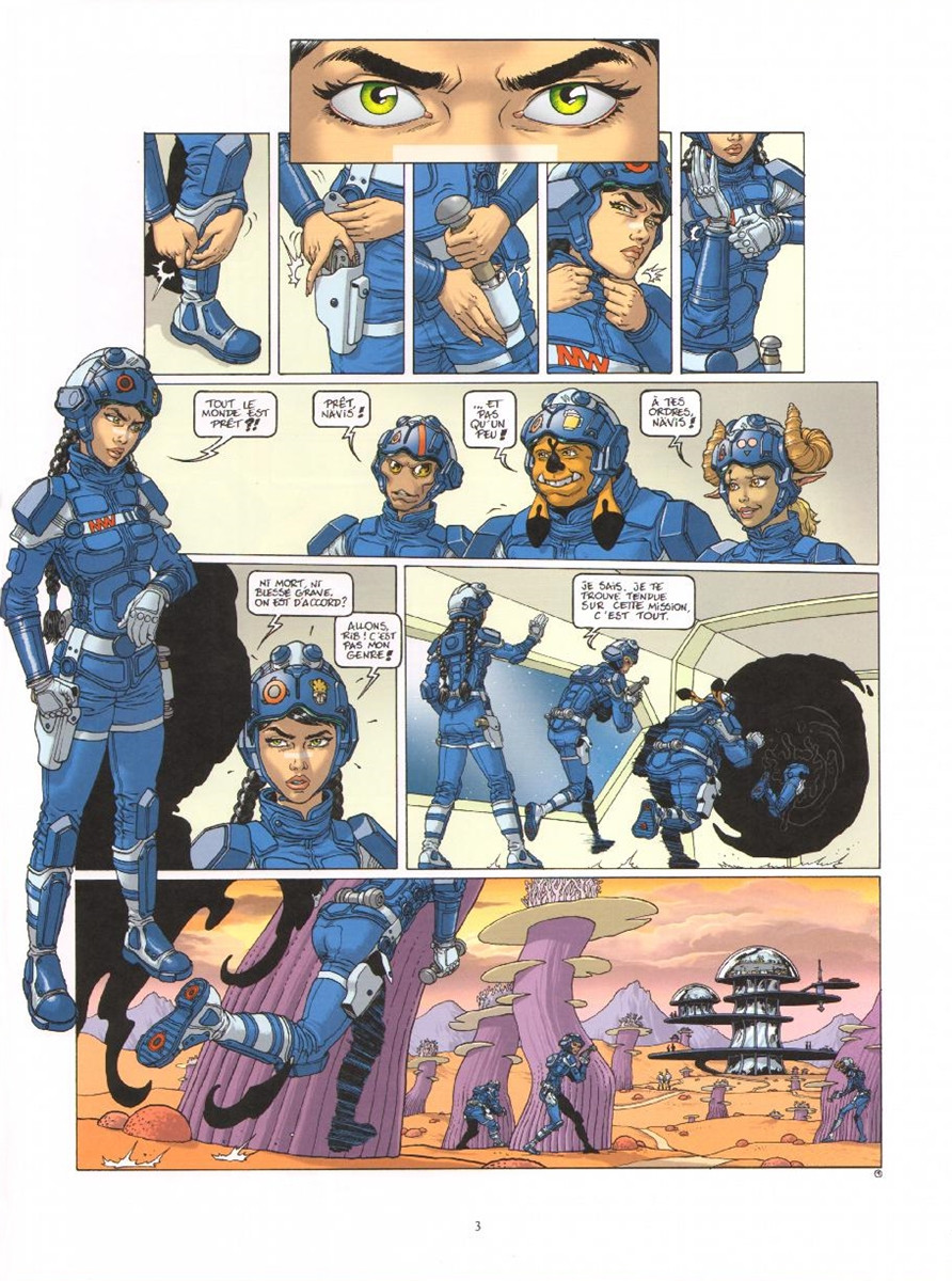 On va avoir droit à une Nävis plus remontée que jamais contre le système. Il y a parfois de quoi être énervé. Ce la arrive tous les jours à des policiers de procéder à des arrestations mais que finalement, la personne arrive à s'en sortir au niveau de la Justice car elle possède de gros moyens. Il y a une justice pour les pauvres qui est implacable et une autre réservée aux riches qui a tendance à être plutôt clément. Ce n'est pas nouveau. Ceci étant dit, on aurait aimé un peu plus de modération dans l'attitude car Nävis devient impulsive comme lors de sa jeunesse. Or, les expériences vécues aurait du lui permettre de gagner en maturité en prenant du recul. Paradoxalement, son fils gagne en sagesse. C'est le monde à l'envers ! Je n'ai pas aimé non plus le fait de commenter toutes les actions ce qui appesanti inutilement la narration. Les images doivent parler d'eux-même. On relèvera également que Jean-David Morvan est totalement absent du scénario laissant libre court à Philippe Buchet qui assume en plus du dessin que je trouve toujours aussi honorable avec son trait soigné et précis. Sillage reste toutefois ce magnifique space-opéra qui brasse plusieurs thèmes se voulant être le reflet de notre monde actuel et qui permet de dénoncer toutes les dérives liées aux inégalités sociales. On voit bien les symboles sur la société d'aujourd'hui malgré cet univers futuriste. Moi, je dis qu'à un moment donné, il faut savoir clore une série même si elle a connu du succès. Il s'agit de ne pas tirer sur la corde et de terminer en beauté. Depuis quelques tomes, cela patine un peu. Et puis, la série fête ses 25 ans d'existence avec ce nouveau tome.BDGest 2014 - Tous droits réservés