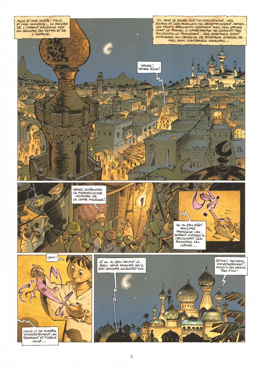 Commençant par un quiproquo ou plutôt par une vilaine manipulation d’un génie fort peu aimable, ce premier tome pose les bases de l’intrigue générale et présente les protagonistes, sans véritable surprise. Malgré l’ouverture sanglante, le ton est léger et enjoué, sans avoir pourtant recours à un humour éculé et aux nombreux jeux de mots dont Arleston est d’ordinaire friand. On ne s’en plaindra pas. Le récit alterne scènes d’action et passages très calmes, ce qui laisse une petite impression de lenteur. Les péripéties ayant lieu sur l’île de Turabah, les multiples pièges que SinBad doit déjouer, le caractère même de la magicienne et l’intrigante panthère blanche qui peut se métamorphoser concentrent l’essentiel de l’album. Et si rien n’est révolutionnaire dans cette histoire, elle est contée de telle façon que tout ennui est évité. Collant bien à l’ensemble, le dessin de Pierre Alary (Belladone, Les Échaudeurs des Ténèbres) fait la part belle au héros, à ses mimiques, ses attitudes, ainsi qu’à une ambiance moyen-orientale animée et merveilleuse. Reconnaissable, le trait assez épais trace des visages souvent en lame de couteau dont on peut déplorer qu’ils soient toujours un peu similaires à ceux des autres productions de cet auteur.
