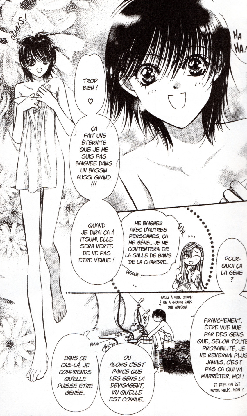 Résumé: Karuizawa... Lieu de villégiature calme et boisé pour une faune huppée qui fuit la touffeur de l'été tokyoïte... Cet endroit de rêve va toutefois être le théâtre de courses-poursuites et quiproquos en pagaille dans ce quinzième tome des aventures de Kyôko dans le show-business ! Car le monde est petit : outre Kyôko venue y tourner les scènes en extérieur de Dark Moon, Shô est venu y enregistrer de nouveaux morceaux, avec dans son sillage les plagiaires de Vie Ghoul. C'est jusqu'à Ren qui fait des pieds et des mains pour y débarquer au plus tôt ! Le tout sur un parfum de Cendrillon et de Petit Chaperon Rouge, ce qui ne manquerait pas de ravir Kyôko, notre héroïne férue de contes de fées, s'il n'y avait pas eu une erreur de casting : qui a donné le rôle du Grand Méchant Loup et du Prince Charmant à un maniaque et à son pire ennemi ?