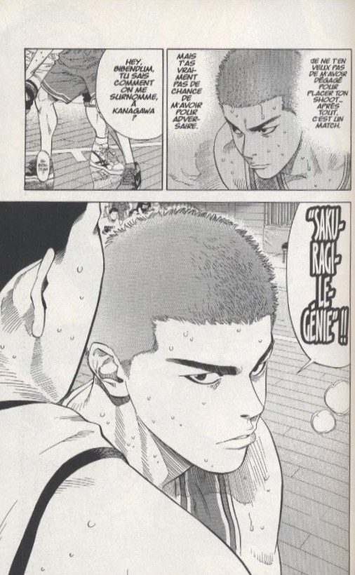 Résumé: Lors du 1er tour du tournoi interdépartemental, Shôhoku parvient à vaincre l'équipe de Toyotama, la meilleure du département d'Osaka. Elle doit ensuite affronter, dès le 2nd tour, la meilleure équipe lycéenne du Japon, celle du lycée technique Sannô. D'entrée de jeu, le duo Miyagi-Hanamichi épate le public par une offensive fulgurante qui se conclut par un alley oop !!