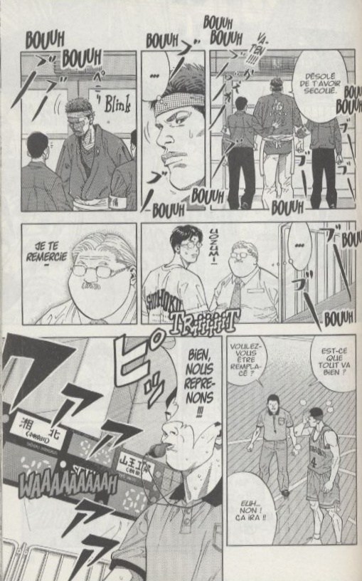 Résumé: L'équipe de Sannô creuse l'écart. L'entraîneur de Shôhoku, Mr Anzai est-il le seul à encore croire à une victoire possible. Non ! Il réussit à convaincre Sakuragi qui lance fièrement: "Je vais battre Sanaô!" Les dés sont jetés et tous les participants sont dans l'arène.