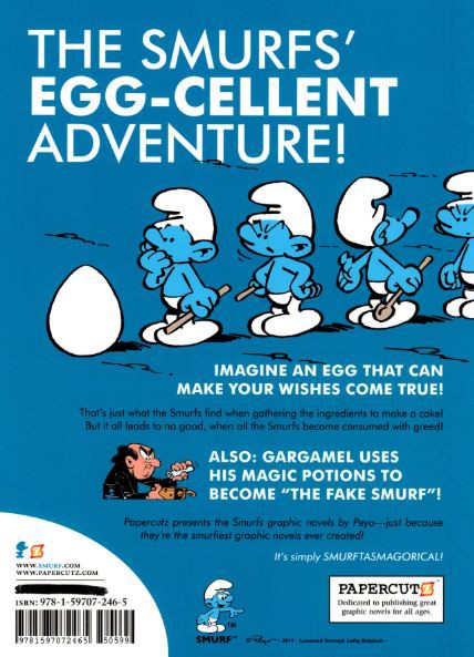 Résumé: What is the secret of the egg? The annual event known as "Smurf Day" is near, and Papa Smurf wants to celebrate by making a big cake. The Smurfs gather all of the ingredients for the cake, but are missing an egg. When two Smurfs find an egg in the forest and bring it back, the other Smurfs soon learn that it is a magic egg that grants wishes! Soon all of the Smurfs are making unwise wishes and the entire village is a mess. Also featuring "The Fake Smurf."