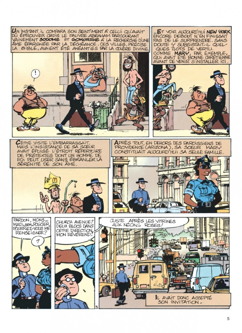 Un excellent tome! ... Tome.. .tome... haha? Le meilleur des trois premiers! Cette histoire de vrai pasteur invité par la mère de notre faux pasteur est prenante! Beaucoup de bonnes idées, comme par exemple cette chapelle empruntée qui a comme paroissiens des prisonniers en transit... Ce qui me fascine toujours dans Soda, c'est à quel point j'imagine mal un éditeur vouloir publier une histoire comme ça aujourd'hui. On se moque de tout dans Soda, et les caricatures sont nombreuses...BDGest 2014 - Tous droits réservés