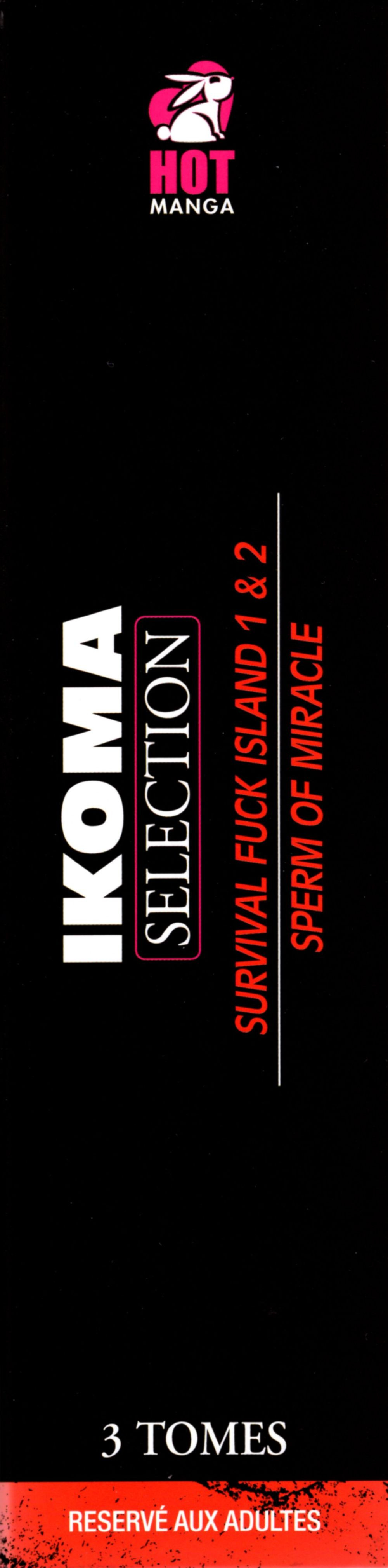 Info édition : Volume ne pouvant être vendu séparément du coffret "Ikoma Selection" en carton rigide illustré, comportant les 2 tomes de la série "Survival Fuck Island" ainsi que le manga "Sperm of miracle". Noté "Dépôt légal à parution". 2 pages en couleur et jaquette illustrée. ISBN du coffret : 978-2-36877-342-0. Prix de vente du coffret : 24,95 euros. Poids total : 998 g.