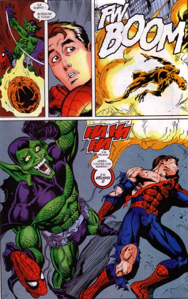 Résumé: Contient: - Amazing Spider-man (I) 441 "Chapitre Final (1) A qui reviendra la couronne" (Amazing Spider-man 441 "The Final Chapter, Part 1 of 4: And Who Shall Claim A Kingly Crown" 11/1998). - Spider-man (I) 97 "Chapitre Final (2) Que Dieu tremble devant la puissance du Bouffon" (Spider-man (I) 97 "The Final Chapter, Part 2: Let the Heavens Tremble At the Power of the Goblin!" 11/1998). - Spectacular Spider-man (I) 263 "Chapitre Final (3) Le triomphe du Bouffon" (Spectacular Spider-man (I) 263 "The Final Chapter (Part 3): The Triumph of the Goblin!" 11/1998). - Spider-man (I) 98 "Chapitre Final (4) J'ai tué Spider-man" (Spider-man (I) 98 " The Final Chapter, Part 4: I Killed Spider-Man!" 11/1998).