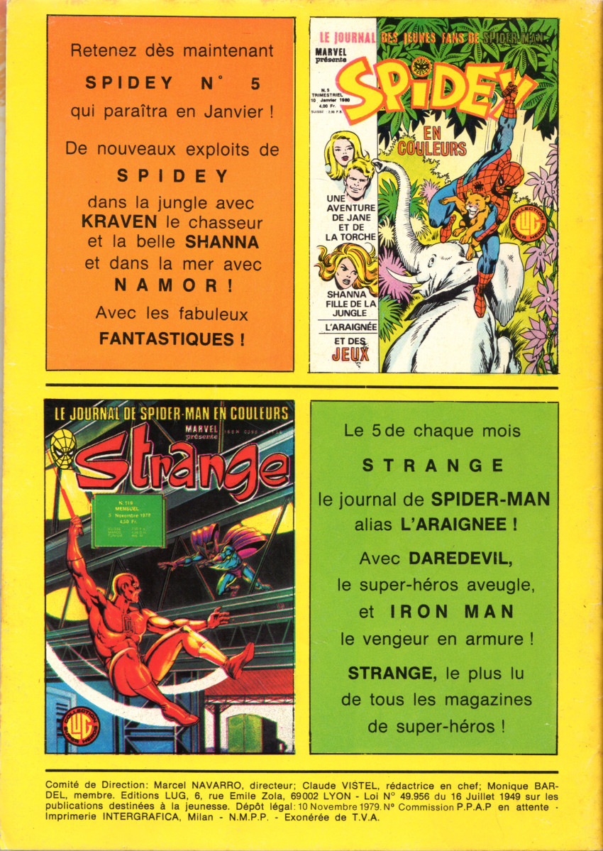 - Les Exploits de Spidey (I) 12.1 "Vols et haute voltige!" (Spidey Super Stories (I) 12.1 "The Law of the Claw" 09/1975).