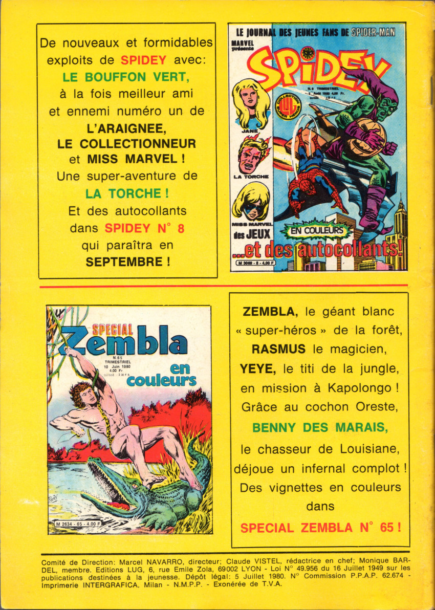 - Les Exploits de Spidey (I) 21.1 "Doc Ock est de retour" (Spidey Super Stories (I) 21.1 "Doc Ock Is Back In Town!" 02/1977).