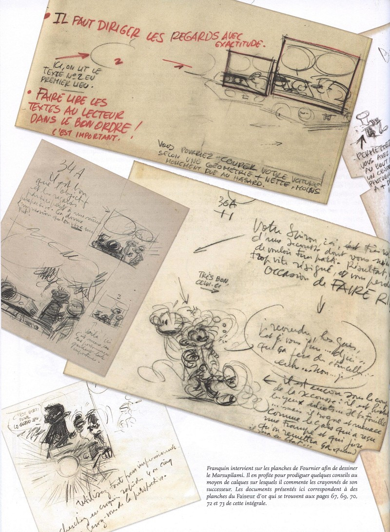 Alors que Franquin arrête "Spirou et Fantasio", les éditions Dupuis proposent à Jean-Claude Fournier, qui fut l'un de ses élèves, de reprendre la série. Ce dernier accepte, et obtient du maître l'autorisation d'utiliser le Marsupilami à une condition : que Franquin dessine lui-même son personnage fétiche. Fournier dessine donc ses planches, laissant un blanc pour le Marsu, les envoie à Franquin qui complète les vides... et corrige au passage les planches en question. C'est ce qu'on peut appeler un travail en étroite collaboration.
