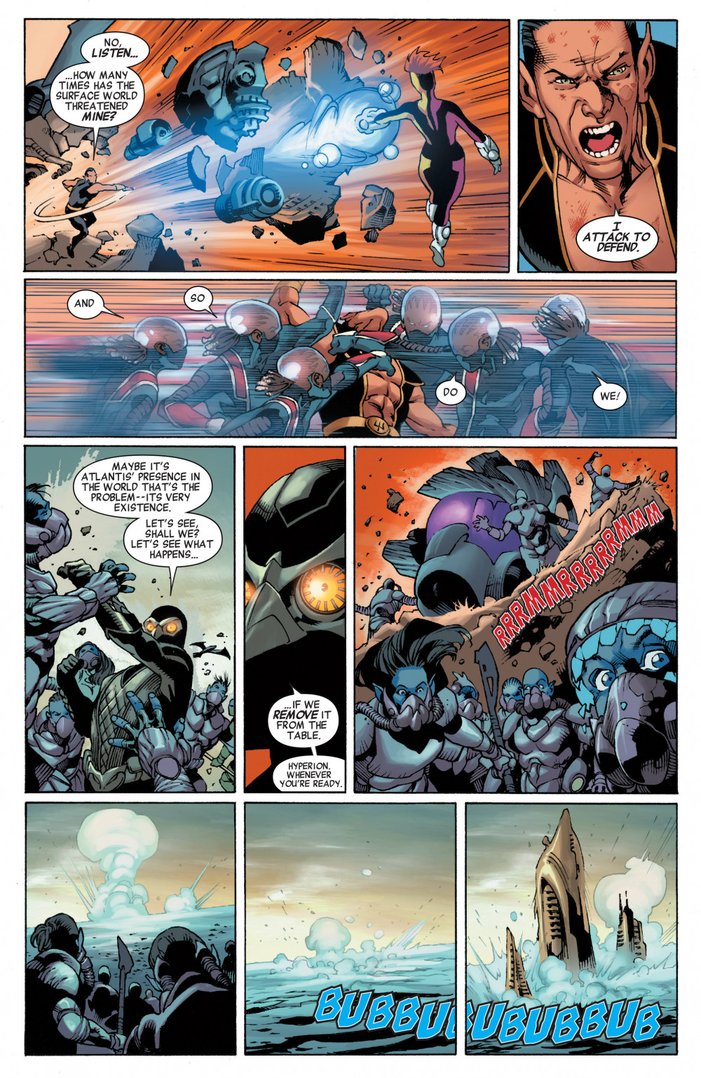 Résumé: They’re each the sole survivor of a lost Earth and they’ll do anything to protect this one, whether you like it or not. The Squadron Supreme -- comprising Hyperion (Avengers), Nighthawk (Supreme Power), Dr. Spectrum (the Great Society), Blur (DP7) and Power Princess -- are a team that doesn’t ask permission or what the rules are. To them all that matters is the safety of Earth and if you stand in the way...that’s your problem! Tell that to the Squadron’s first target -- Namor, destroyer of Dr. Spectrum’s homeworld, who will have to pay for his crimes...but at what cost to the people of Atlantis.