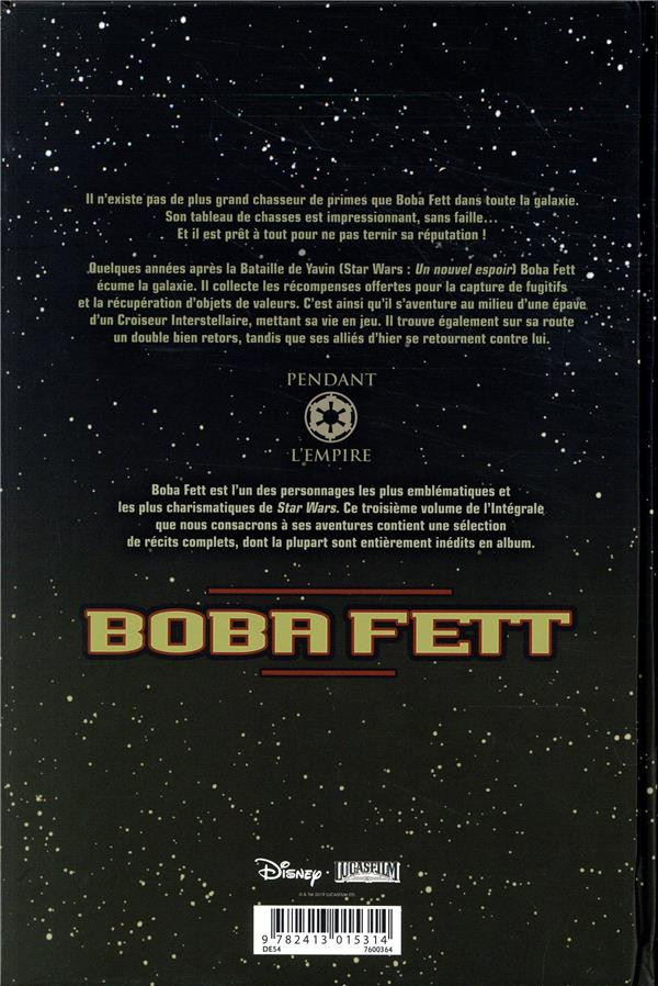 Résumé: Ce recueil de récits complets réédite en albums - au format « Archives » - les histoires mettant en scène le plus craint de tous les chasseurs de primes de la galaxie, qui n'avaient jusqu'alors pas eu les honneurs de la publication en album. Ce troisième opus clôture les rééditions des aventures de Boba Fett dans ce format.