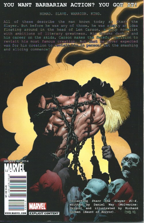 Résumé: His army assembled, the barbarian juggernaut Starr marches out of the Darklands and straight into Kulumurud, the heart of the evil sorcerer Trull’s empire! But Trull knows Starr is coming and goes to Len Carson, the hapless pulp novelist and creator of Starr whom he holds captive, to use his magic—his typewriter—to create a deadly trap that Starr not only won’t be able to avoid, but that he will not be able to survive! The fate of Zardath hangs in the balance of this final battle, with no guarantee of a future of any kind!