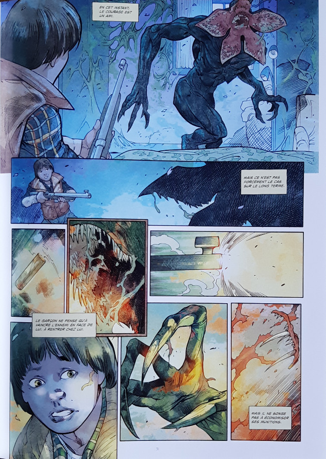 Evidemment, je suis un grand fan de la série depuis ses débuts sur Netflix. Ce fut d'ailleurs ma toute première série sous ce nouveau support en 2017 et depuis, je n'ai plus jamais arrêter de regarder d'autres séries tout aussi intéressantes. J'attendais par conséquent beaucoup de cette lecture en comics afin de me plonger dans l'univers de ces jeunes héros qui ont fait les belles soirées de ces dernières années. Oui, on retrouve cette ambiance un peu glauque mais surtout angoissante en se penchant surtout sur le personnage de Will Byers. Je trouve également que l'introduction est plutôt mal réalisée car on ne connaît pas vraiment les tenants et les aboutissants en se plongeant directement dans l'action. Je sais néanmoins que c'est un parti pris de la aprt des auteurs. En réalité, il s'agit de décrire les événements vécus par Will dans le fameux monde à l'envers pendant la saison 1 de la série ce qui constitue un complément plutôt intéressant au premier abord. Au niveau du dessin, c'est malheureusement assez inégal avec des personnages qui sont assez méconnaissables d'une case à l'autre. Que dire également d'une colorisation à outrance ?! Bref, cela ne brillera pas pour la précision du trait ou une certaine qualité graphique qu'on était pourtant en droit d'attendre. Une réalisation bancale associée avec un graphisme manquant de précision rend cette œuvre assez décevante même pour les fans. On sent qu'il s'agit d'une commande purement commerciale afin de surfer sur la vague du succès. Je n'ai rien contre la démarche à condition toutefois que la qualité soit au rendez-vous ce qui n'est pas le cas en l'espèce.BDGest 2014 - Tous droits réservés