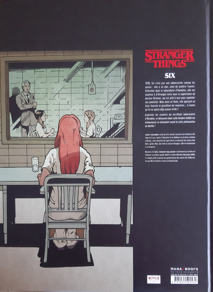 Résumé: 1978. Six n'est pas une adolescente comme les autres. Elle a un don, celui de prédire l'avenir. Enfermée dans le laboratoire d'Hawkins, elle est soumise à d'étranges tests sous la supervision du docteur Brenner, qui est prêt à tout pour exploiter son potentiel. Mais dans un flash, elle aperçoit un futur funeste et grouillant de monstres... à moins qu'ils ne soient déjà autour d'elle ?
