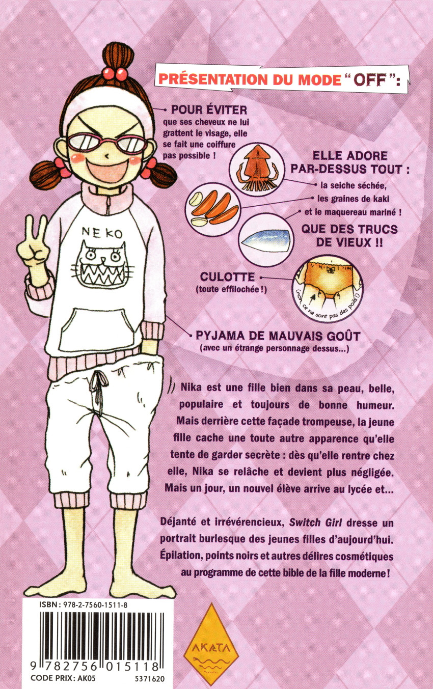 Prenant le relais du populaire Fruit Basket, Switch girl est le nouveau shôjo à succès publié par Akata Delcourt. Au programme de la série : double vie et jonglage entre l’être et le paraître. Un thème qui exploite ici le côté le moins glamour des vedettes - même si ça se limite à être celles de l'école - et rappelle qu’au fond, aussi jolies qu’elles puissent sembler, elles n’en restent pas moins des personnes comme les autres dont les besoins les plus terre-à-terre ne manquent jamais de se faire sentir à un moment donné. Dans ce premier tome, le décalage est énorme entre les modes « off » et « on » de l’héroïne, mais c’est justement cette exagération caricaturale qui prête à sourire et confère sa saveur au récit. En s’inspirant d’elle-même et de ses proches, Natsumi Aida met en scène des situations à la fois amusantes et empreintes de réalisme, ce qui les rend encore plus drôles. En plantant le décor, l’auteure s’attache aussi à reprendre de nombreux ingrédients du genre. Ainsi la romance, pour l’instant limitée à l’amitié, pointe-t-elle son nez entre Nika et Arata, à travers la pièce de théâtre – inévitable clou des fêtes de fin d’année scolaire – jouée en fin de volume. Forcément, les garçons de l’histoire tiennent de la gravure de mode et, même avec ses lunettes, Arata a tout du ‘bishônen’ qu’affectionnent lectrices et mangaka. Ces aspects se retrouvent donc dans le dessin, typique du shojo, qui souligne à l’envi les émotions dans des yeux brillants et des mimiques enflées, qui constituent en partie le charme de l’ensemble.