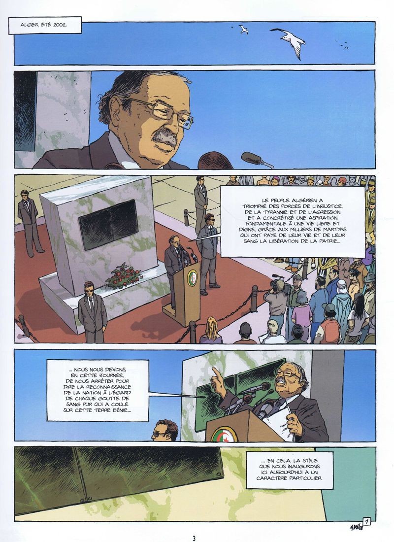 J'ai bien aimé cette bd qui raconte une belle histoire d'amour sur fond de guerre d'Algérie. C'est un peu comme ces grands films sur des passions qui se terminent généralement assez mal. Les auteurs ont eu un parti pris qu'ils assument. Le lecteur sera souvent balladé pour savoir qui sont réellement les agresseurs ou les agressés dans ce contexte un peu trouble où l'on parlera des "évènnements". L'Algérie est un pays qui a beaucoup souffert de la colonisation et qui mérite certainement notre regard sur son histoire. Il y a encore aujourd'hui des plaies qu'il faudra bien refermer un jour. En tout cas, l'ambiance de l'époque est assez bien reconstituée. La lecture se révèlera assez agréable. Le héros voudra s'éloigner de la tourmente mais sera vite rattrapé par les événements tragiques de cette guerre et il devra faire des choix. On ressent beaucoup d'émotion notamment vers la fin de ce récit. Un diptyque que je conseille vivement pour regarder en face une partie de notre histoire aussi honteuse qu'elle soit. Oui, il fallait certainement du courage aux auteurs pour affronter ce sujet sans tabou. Une démarche que j'approuve avec un résultat à la hauteur ! Pas mal en somme !BDGest 2014 - Tous droits réservés