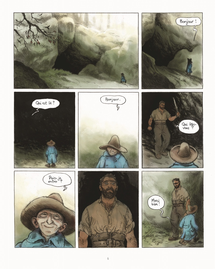 Frédéric Bihel parfois sorti de véritables chef d’œuvre dans le passé. Je pense à des titres comme « Exhausse-nous ». Il a rarement été un auteur complet à savoir dessinateur et scénariste. C'est le cas ici avec cette adaptation du roman d'Anne Laure Bondoux. Je n’ai pas aimé ce titre plus que cela. Il y a une première partie que je qualifierai d'excellente mais la seconde semble être totalement déconnecté bien que cela ne soit pas le cas. Je n'ai pas aimé la direction prise avec d'ailleurs un final assez confus. Cependant, l'ensemble demeure correct. Visuellement, c'est une très belle œuvre magnifié par un dessin de toute beauté avec un coup de crayon un peu charbonneux. Les paysages même souterrains, les sous-bois de cette forêt profonde, la steppe désertique, puis le bord de mer, que de beauté qui nous sont confiés ici par l'artiste. Même les visages des différents protagonistes sont expressifs et profonds. Bihel a véritablement un don particulier pour donner vie à ses personnages en leur conférant parfois une certaine maturité de vie. Il y a certes un côté poétique qui raisonne comme un véritable hymne à la vie et à l'amour même dans un contexte de pauvreté et de guerre. La thématique est celle du choix que l'on a pas forcément. C'est un peu dommage que ce conte philosophique soit passé si inaperçu par le grand public. Ce roman graphique ferait certainement des adeptes surtout avec de si belles illustrations.BDGest 2014 - Tous droits réservés