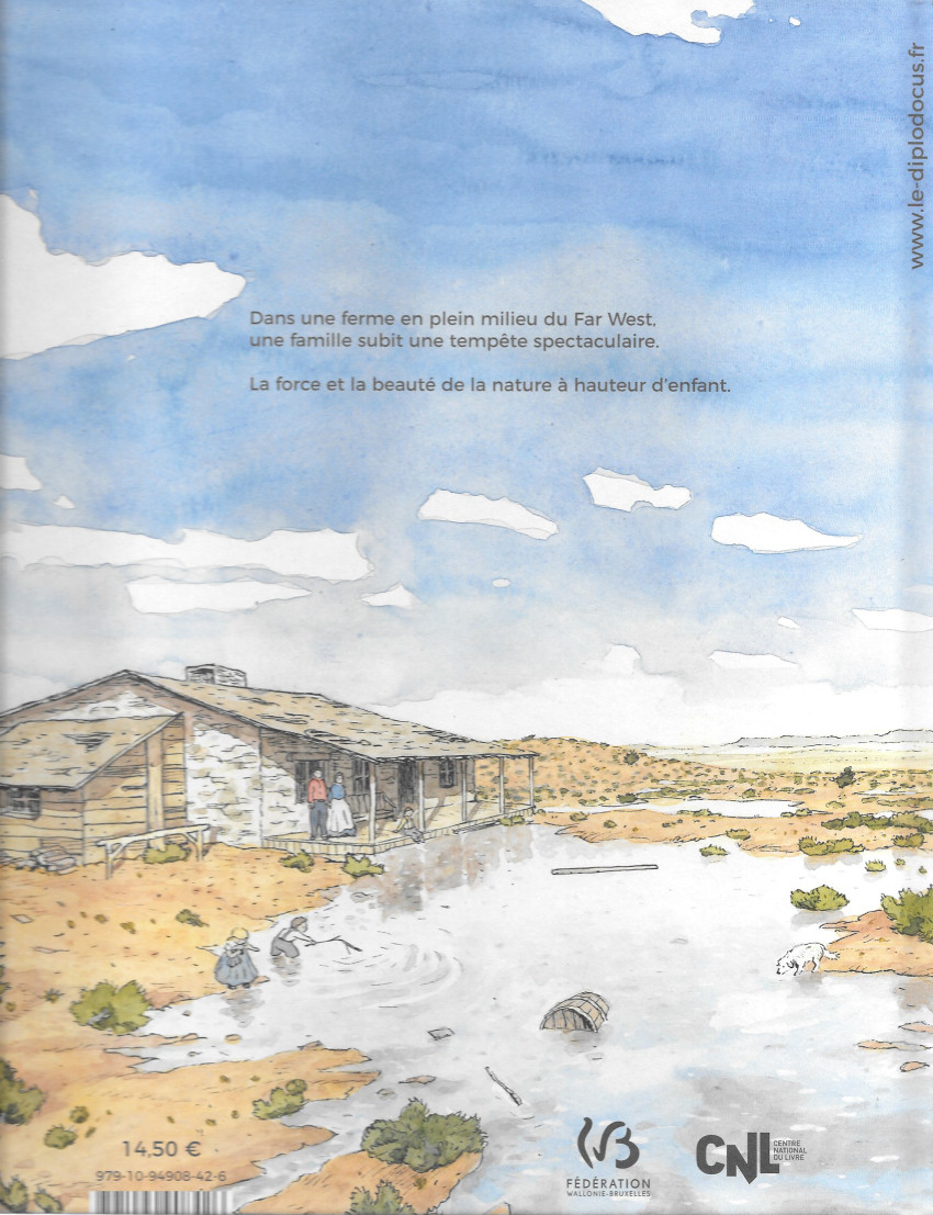 J'aime bien parfois casser un peu mes codes et mes habitudes pour découvrir une autre forme de BD et notamment celle consacrée à la jeunesse. Il faut dire, qu'en l’occurrence, j'ai été attiré par la beauté de la couverture. L'auteur David Wautier nous offre une déclaration d’amour à la nature, sous forme de bande dessinée totalement muette mais pleine de suspense et de sensations. En effet, dans une petite ferme en plein milieu du Far-West, une famille va subir une tempête plus forte que d'habitude. Certes, c'est une BD destinée à la jeunesse mais qui peuvent parler à des adultes comme moi grâce à une véritable intelligence du scénario. Le récit est vraiment bien construit avec une véritable montée en puissance puis un final tout à fait libérateur. Au niveau graphique, c'est un véritable émerveillement à l'image d'ailleurs de la couverture. L'auteur montre les espaces naturels du Wyoming avec une sensibilité qui marque les esprits tant les couleurs sont chaleureuses. J'adore également ce trait réaliste qui décidément me séduit beaucoup. Cette BD , c'est comme une ode à de la poésie dans un contexte pourtant difficile. Une histoire finalement riche et intéressante et qui est superbement mise en image. Que demander de plus ?BDGest 2014 - Tous droits réservés