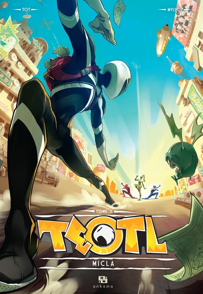Troisième tome en deux ans, les auteurs de Teotl sont réglés comme des métronomes. Quant au plaisir de découvrir la suite des aventures de la bande de potes un peu barges, il demeure intact. La clé du succès ? Tout d’abord un mélange des genres réussi, l’appellation « BD Fusion » prenant ici tout son sens : comics et manga pour l'aspect visuel, mythologie aztèque, fantasy, science-fiction et supers héros pour le scénario. Un patchwork ? Oui, mais harmonieux. Le récit est dense, loufoque, barré, tout en formant un ensemble plutôt cohérent. Les dialogues, largement empruntés au langage des cités, bourrés d’humour, sont souvent drôles et incisifs. Le dessin ? Il dépote. Pas de temps mort, ça fighte dans tous les sens. Mylydy s’en donne à cœur joie, multiplie les plans, se déchaîne sur les phases de combat et casse le rythme de lecture en proposant de temps en temps une pleine page. Comme elle s’en explique dans un cahier graphique qui, pour une fois, ne se contente pas d’aligner esquisses ou autres croquis, un vrai travail de recherche a été fait pour que les scènes de violence et de sexe soient suggérées plutôt que montrées crûment, histoire de ne pas laisser sur le bord de la route les plus jeunes lecteurs.
