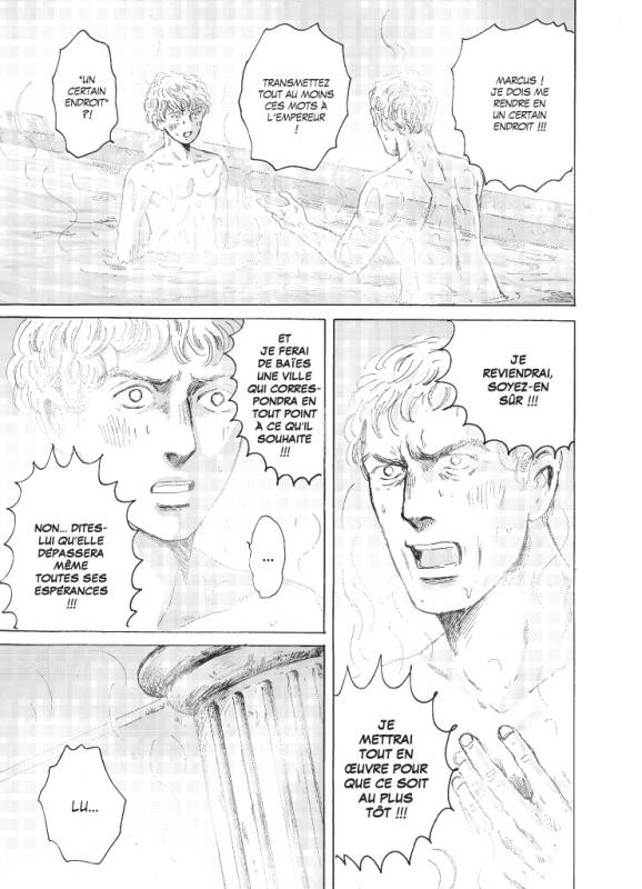 Satsuki n’arrive pas à oublier Lucius, qui s’est subitement volatilisé sous ses yeux… Elle se lance sur ses traces et décide d’entreprendre des fouilles archéologiques à Baïes, dans l’espoir d’y exhumer un indice qui lui permettrait de se rapprocher de Lucius à travers le temps… Notre héros, quant à lui, est de retour dans la Rome antique et s’attèle à la construction d’un grand site thermal dans cette même ville, mais deux millénaires plus tôt, alors même que l’empereur Hadrien risque de succomber à sa maladie à tout moment…