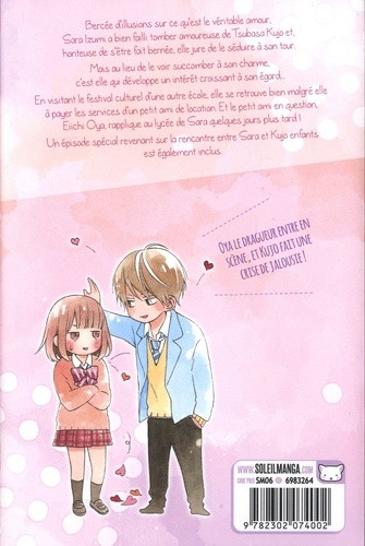 Résumé: Sara ne rêve que du grand Amour, comme dans les films ! En découvrant le beau Tsubasa en train de faire pleurer une camarade, elle s'emporte à tort. Celui-ci se confie alors à elle. Leur amitié naissante laisse progressivement place à des sentiments nouveaux et purs... du moins, c'est ce que croyait Sara ! Ridiculisée par Tsubasa, elle jure qu'il s'en mordra les doigts et tombera amoureux d'elle !