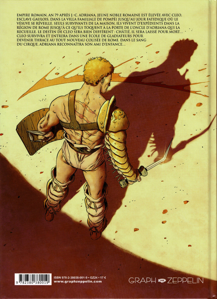 Résumé: En l'an 79 après J.-C., Adriana Pollia, une jeune noble de Pompéi et son esclave Cleio ont miraculeusement échappé à la colère du Vésuve. Seuls, ils vont vivre d'expédients et prendre soin l'un de l'autre. Mais lorsqu'ils sont recueillis par l'oncle d'Adriana, Cleio est rejeté avec brutalité, le laissant mort. Adriana, suivra son destin de noble Romaine et épousera un vieux sénateur, devenant une respectée matrone et finira par oublier son ami de jeunesse et la partie la plus authentique d'elle-même. Mais le passé reviendra frapper à sa porte le jour où, au Colisée, elle assistera aux débuts d'un jeune gladiateur en qui elle reconnaîtra son amour de jeunesse... Scénarisé avec précision, illustré avec élégance, Trifogli nous offre une de ses plus belles réalisations embellie par les couleurs chaudes de son ami Andrea Celestini, cette série en 3 volumes promet un voyage historique et épique dans l'univers des gladiateurs de la Rome antique