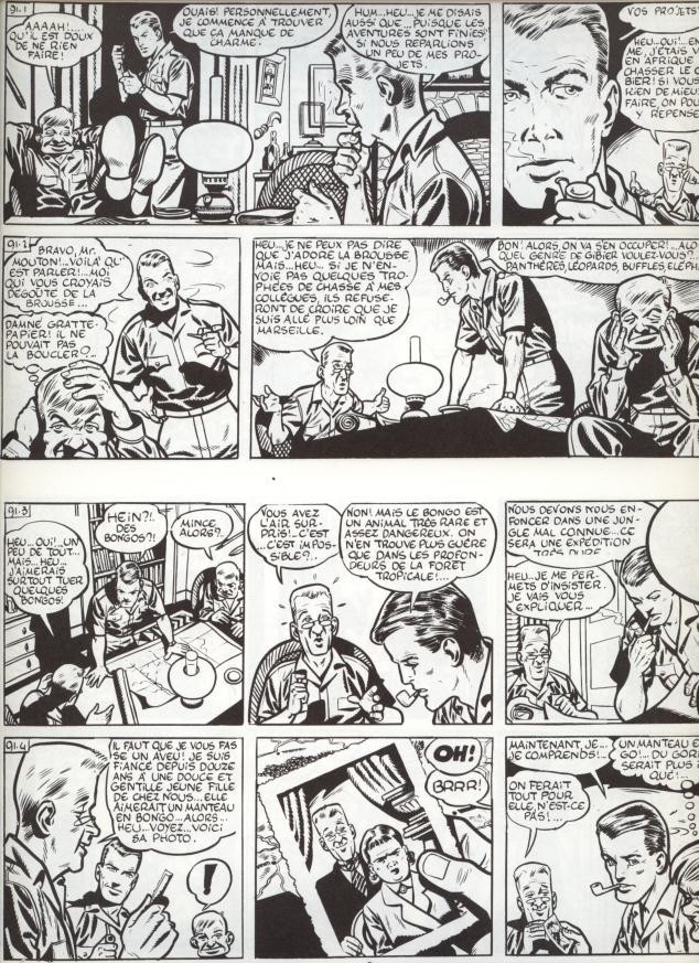 Mais jusqu'à présent son safari a été désastreux ! Il a bien participé à des aventures qui rempliront sa vie mais n'a toujours pas tué de bongos ! Or, ce brave gagnant de la loterie nationale a promis à sa douce et tendre Pharaïlde un manteau en bongo.