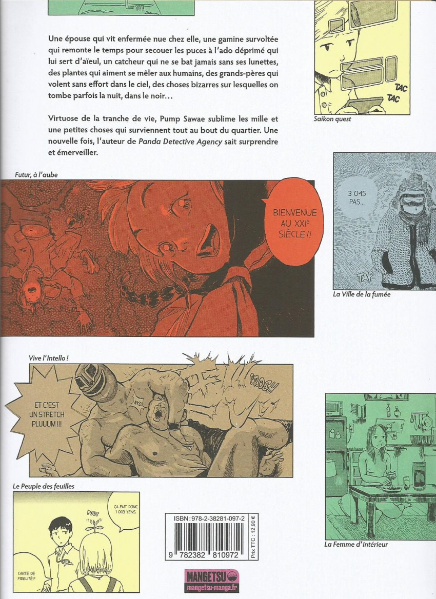 Résumé: Une épouse qui vit enfermée nue chez elle, une gamine survoltée qui remonte le temps pour secouer les puces à l'ado déprimé qui lui sert d'aïeul, un catcheur qui ne se bat jamais sans ses lunettes, des plantes qui aiment se mêler aux humains, des grands-pères qui volent sans effort dans le ciel, des choses bizarres sur lesquels on tombe parfois la nuit, dans le noir...