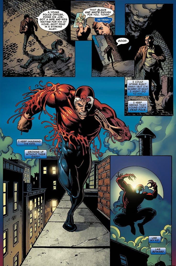 Résumé: As each new generation of men must hand down the torch to the next, so each new generation of alien symbiotes must hand down the, ah, stringy, fleshy tendrils. So move over Venom, step aside Carnage, because Toxin is taking the spotlight! When the full-scale jailbreak from the pages of New Avengers leaves New York overrun with super-villains, Pat sees the perfect opportunity to use the creature sharing his body for good. But Toxin might have other ideas! Featuring a special guest appearance by Spider-Man!