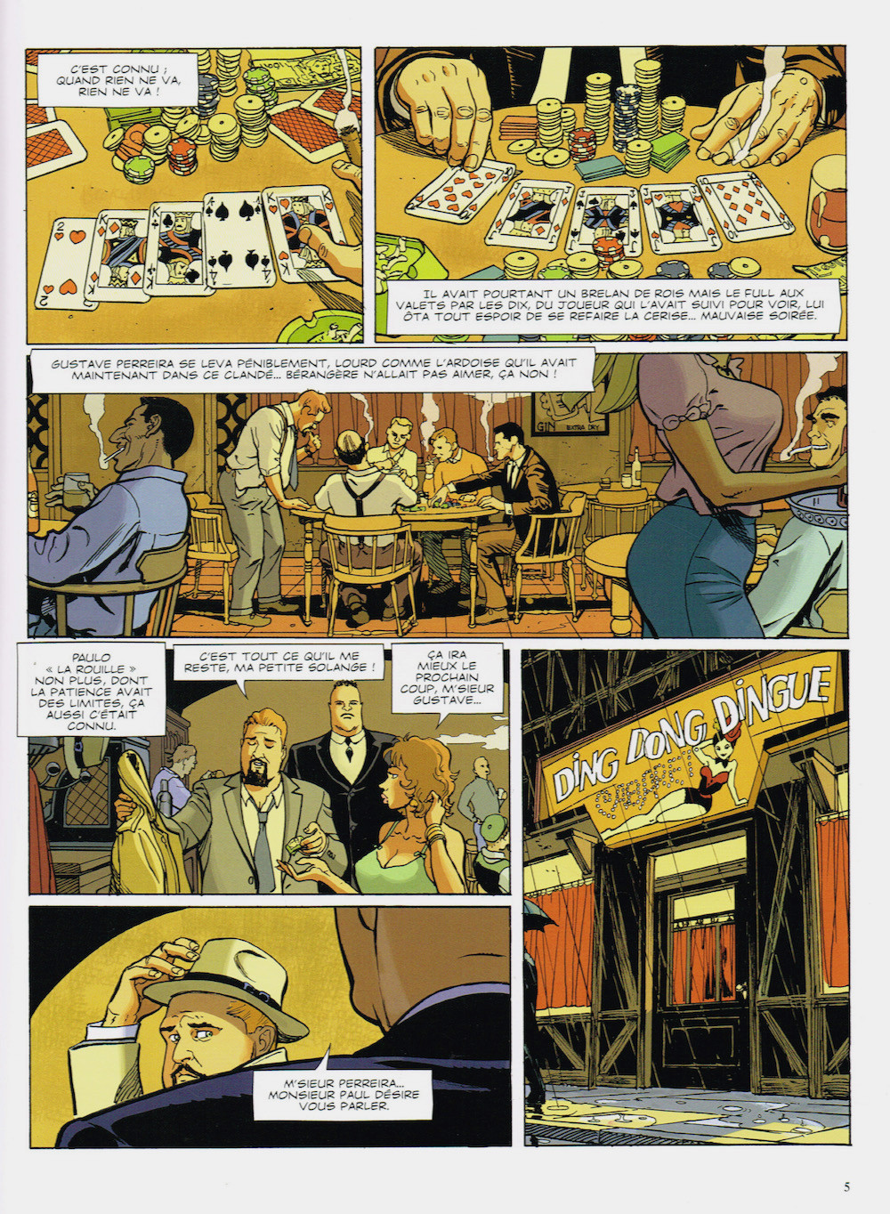 Sentiment très mitigé à la lecture du dernier Tramp. Mitigé et partagé, car j'aurais bien aimé dire du bien de cet album, de part mon attachement à la série tout d'abord. Je dois cependant me contenter d'un partagé et mitigé, car la série a depuis longtemps désormais quitter le souffle de la grande aventure de ses belles heures, pour de petites intrigues, aux petits enjeux, et assez simplistes. De beaux albums comme ceux-ci, de grande taille, et à la belle pagination doivent pouvoir offrir plus qu'une intrigue digne d'un Félix de Tillieux. Et je ne dis pas ça méchamment du tout, car j'apprécie beaucoup Félix. Cependant, Félix, ce sont des récits en 12 planches des années 50. 70 ans plus tard, avec 5 fois plus de planches, et un plus grand format, on n'arrive pas à faire mieux ? Non, en cela, je suis assez déçu. Et pourtant, l'idée d'une intrigue se déroulant à Porto Rico était enthousiasmante, avec son contexte géopolitique américain, mais aussi sa situation géographique dans les Caraïbes, son climat, son architecture coloniale, sa nature luxuriante. Sauf que tout ceci n'est qu'évoqué, qu'effleuré dans l'album. La faute probablement en grande partie à son scénariste, Jean-Charles Kraehn, qui a bien su évoque le statut américain de l'ile, mais sans le développer outre mesure. La faute aussi en partie au dessinateur, Roberto Zaghi, qui ne nous offre que de petites vues à hauteur d'hommes des scènes dans l'ile, alors que la couverture laissait espérer de belles planches, avec de beaux bâtiments, de belles vues ? A moins que le storyboard ne lui en laisse pas la possibilité ? La faute aussi en partie à une intrigue qui met du temps à quitter Rouen, Calec qui met du temps à larguer les amarres (quand bien même ce passage va au contraire très vite dans les récitatifs). Bref, il y a pour moi un mauvais découpage de l'album, avec une bonne moitié de celui-ci se déroulant dans Rouen, et donc une seule moitié seulement, à la louche, se déroulant dans les Caraïbes. La bonne nouvelle de ceci, c'est qu'on est débarrassé, du moins je l'espère, du cycle d'intrigues avec Perreira. Le personnage de Rosanna ne m'intéresse pas non plus plus que cela, de même que la vie de famille de Calec. Un ajustement de ce type de scènes aurait aussi été nécessaire de mon point de vue. Après, je suis obligé d'admettre que la lecture reste fluide, que c'est agréable à l’œil, bien écrit. il y a juste un goût d'inachevé, d'aventure qui ne décolle jamais vraiment, et finalement, d'une certaine forme de gâchis puisque le matériel brut aurait à mon avis pu permettre de faire beaucoup mieux.BDGest 2014 - Tous droits réservés
