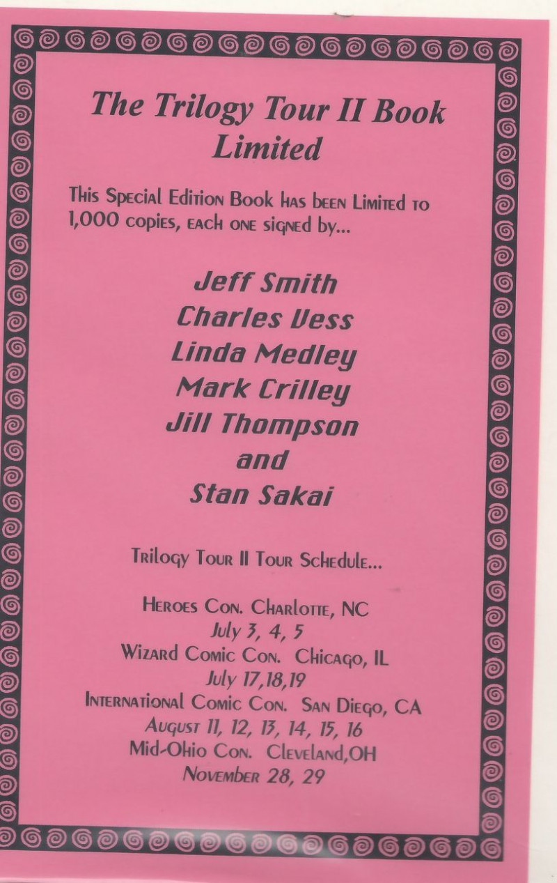 Résumé: Comics de présentation de la tournée-expo de Charles Vess, Linda Medley, Mark Crilley, Jill Thompson Stan Sakai et Jeff Smith de 1998. Publie un court récit de chacun.