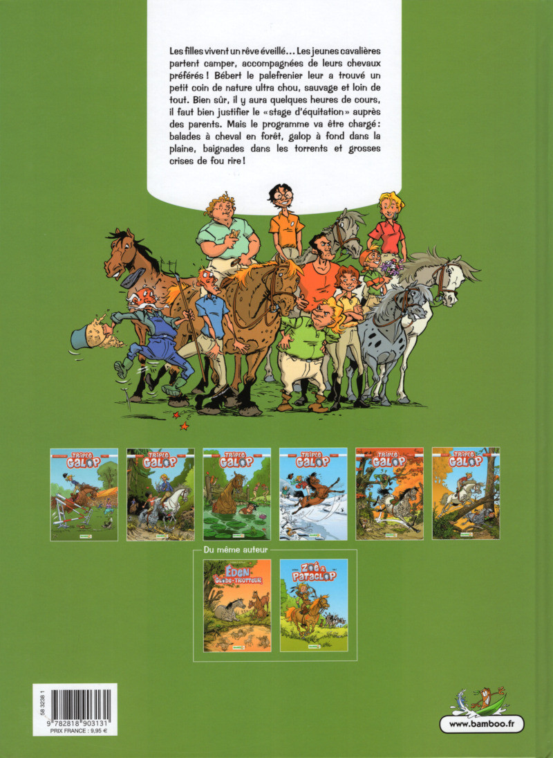 Résumé: Les filles vivent un rêve éveillé Les jeunes cavalières partent camper, accompagnées de leurs chevaux préférés ! Bébert le palefrenier leur a trouvé un petit coin de nature ultra chou, sauvage et loin de tout. Bien sûr, il y aura quelques heures de cours, il faut bien justifier le "stage déquitation" auprès des parents. Mais le programme va être chargé : balades à cheval en forêt, galop à fond dans la plaine, baignades dans les torrents et grosses crises de fou rire !