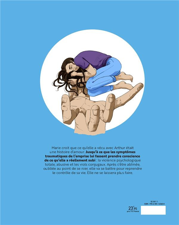Résumé: Marie croit que ce qu'elle a vécu avec Arthur était une histoire d'amour. Jusqu'à ce que les symptômes traumatiques de l'emprise lui fassent prendre conscience de ce qu'elle a réellement subi : la violence psychologique totale, abusive et les viols conjugaux. Après s'être abîmée, oubliée au point de se nier, elle va se battre pour reprendre le contrôle de sa vie. Elle ne se laissera plus faire.