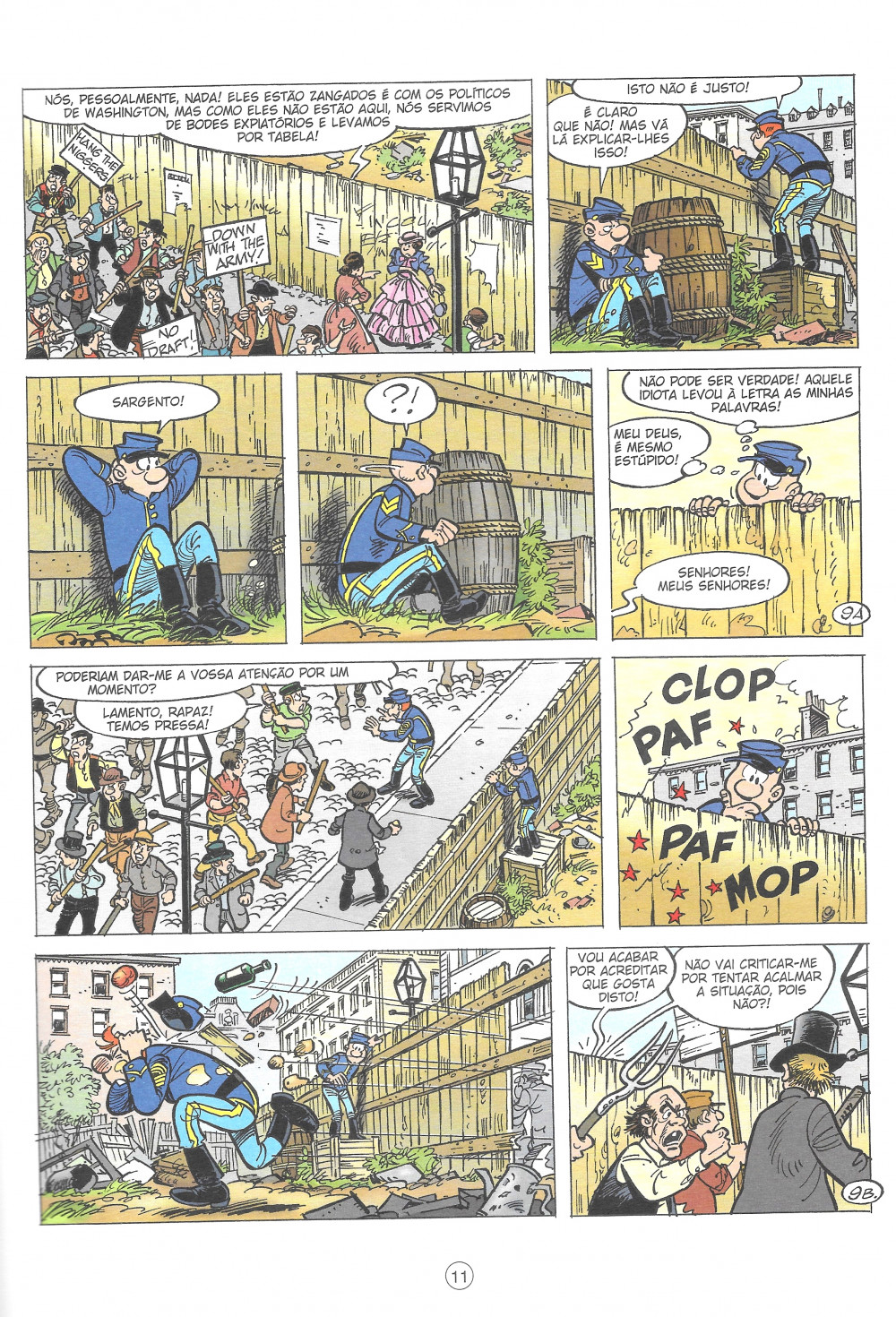 Résumé: Face à necessidade de conseguir novos recrutas para substituir os soldados mortos em combate, Lincoln decreta a conscrição. A medida, altamente impopular, gera um sentimento generalizado de revolta, e Blutch e Chesterfield são enviados para Nova Iorque, juntamente com o seu regimento, para supervisionar as operações de recrutamento dos conscritos. Mas estes acabam por se sublevar, originando uma série de motins um pouco por toda a cidade. Os nossos dois heróis vão ter de mudar de campo para escaparem com vida a estes tumultos!