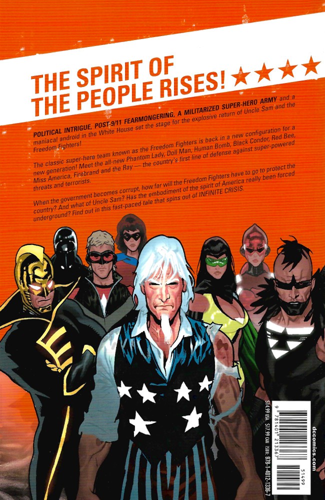 Info édition : Contient Uncle Sam and the Freedom Fighters (2006) #1-8 et un prélude de 11 planches paru initialement dans le one-shot DCU: Brave New World (2006). Noté "First printing".