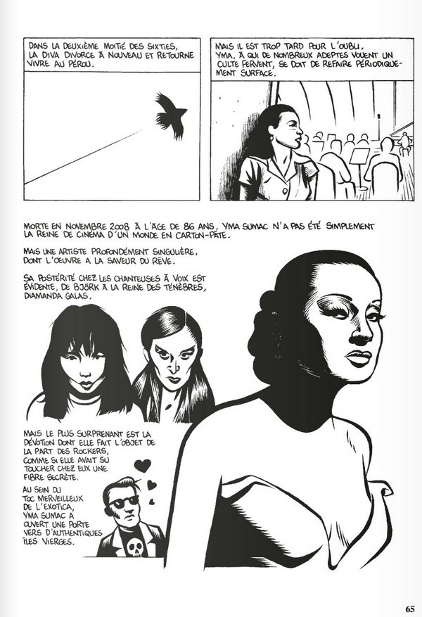 Le recueil propose une sélection de trente-six de ces musiciens décalés que le scénariste détaille sous la forme de mini-biopics synthétiques et percutants. Deux-trois détails biographiques révélateurs, quelques titres importants et les inévitables anecdotes « wtf » (avec des clients comme Sun Ra, Brigitte Fontaine ou Moondog, ce n’est pas ça qui manque) rendent ces vignettes attrayantes et pétillantes. De plus, dans son choix, Le Gouëfflec a opté pour la diversité : rock’n’roll évidemment, mais aussi jazz, classique, chanson française, électro et expérimental, il y en a réellement pour tous les goûts. L’ensemble est illustré en toute liberté par Nicolas Moog. Le dessinateur profite de la variété de ces profils pour changer constamment et intelligemment sa mise en page suivant le cas ou les situations. Celle-ci est largement pourvue en ré-interprétations de pochettes de disques ou de photos iconiques que les amateurs se feront certainement un plaisir de reconnaître.