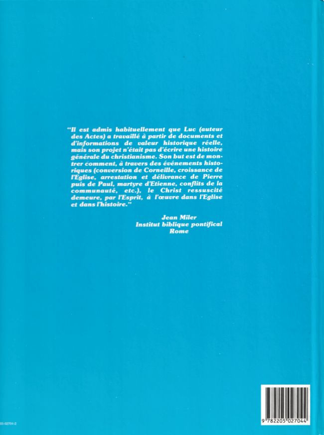 Résumé: "Il est admis habituellement que Luc (auteur des Actes) a travaillé à partir de documents et d'informations de valeur historique réelle, mais son projet n'était pas d'écrire une histoire générale du christianisme. Son but est de montrer comment, à travers des évènements historiques (conversion de Corneille, croissance de l'Église, arrestation et délivrance de Pierre puis de Paul, martyre d'Étienne, conflits de la communauté, etc.), le Christ réssuscité demeure, par l'Esprit, à l'oeuvre dans l'Église et dans l'histoire."